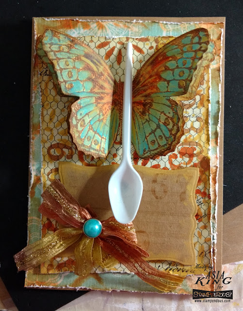 The wooden planks have been 'freestyled' from patterned paper, inked with distress inks, and embossed with wood texture embossing folders. I've not tried this technique before, and I love how these came out. The texture is just fab!