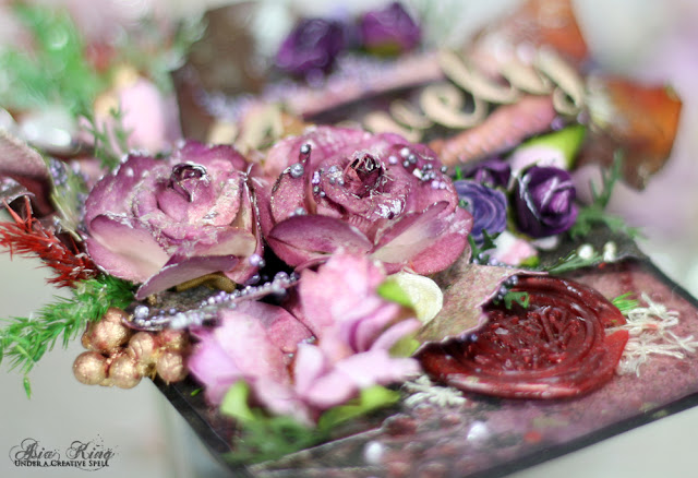 The beautiful chippies are from Dusty Attic and I painted them with DecoArt paints. I secured them to the page using my trusty Adhesive Sheets.