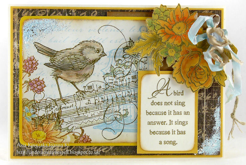 Gorgeous creation Joanna. Such lovely colours and embellishing and I have my eye on that bird stamp too - on my must have list!